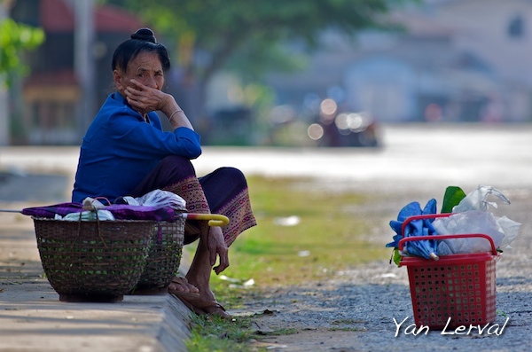 Arrivée sur Luang Nam Tha en début d'après midi, le temps de trouver une Guest-House et me voici en vadrouille dans les rues de la ville avec mon 300 sur le boitier. Balade sympa sous le soleil et de suite on a le sentiment que tout va au ralenti, la vie semble se passer doucement. Sentiment étrange mais vraiment pas désagréable. Les gens font leurs petites vies et ne s'occupent nullement de moi. A part cette petite fille qui n'a vraiment pas apprécié que je la photographie sous l'hilarité de toute la famille autour.